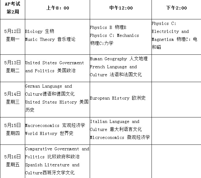 2014年AP考試時間