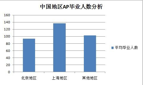 1.上海地區AP學校畢業生平均人數較高,高于北京和其他地區,平均達到130多人。