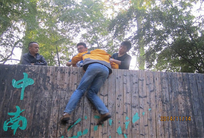 這個項目需要幾人合力把隊友拉到一定高度,同時,跳起來的學生也要對自己的隊友完全地信賴。通過這個項目,學生們互幫互助,團結友愛,彼此之間的關系又更近了一步。