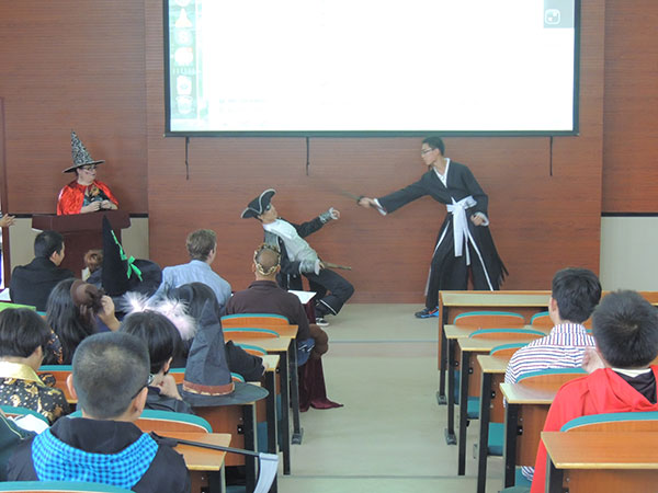 10月31日上午,巫婆僵尸、勇士海盜齊齊現身上海楓葉國際學校,各顯神通比拼自己的創意!學生們不僅把掃帚、鬼臉搬上了各個教室的文化墻,還舉行了萬圣節服飾PK賽。學生們自愿上臺展示自己的服飾,并進行表演。臉譜、古裝輪番上陣;動漫和卡通人物紛紛光臨現場;走了馬里奧,又來了南瓜姑娘;哈利波特和小伙伴們擊退敵人還送來萬圣節糖果……選手們精彩的表現贏來了現場觀眾的熱情歡呼。獲獎選手都獲得了校長送的一份早餐。