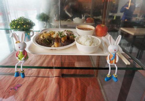 中午,大家匯聚到全新的食堂,享受四菜一湯營養搭配均衡的午餐,打造一新,干凈衛生的食堂環境,讓來校參觀的家長和學生吃的安心、舒心、放心。