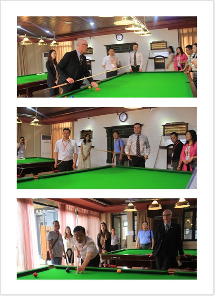 ——到了斯諾克俱樂部,看到先進的設備,連校長都忍不住一試身手