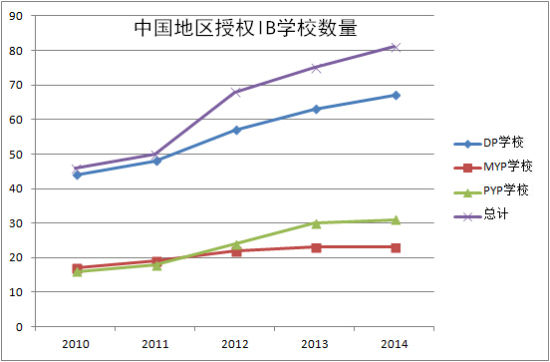 隨著國民對素質教育的渴求及中國的經濟增長,中國地區國際學校近幾年以前所未有的速度蓬勃發展。IB國際文憑課程,無論是教育理念還是課程設置上都越來越受到中國家長的認可,IB學校已經成為中國國際學校的一支重要力量。為了讓大家更清楚IB學校在中國地區的發展狀況,漢通教育根據IBO官網信息及中國地區IB學校的信息特制作本報告。 一、中國地區授權IB學校情況 1.1.中國地區得到IBO授權的學校總體已達81所 截止到2014年8月,中國得到IBO授權的學校一共有81所: 注:IB課程的小學階段是PYP,中學階段是MYP,高中文憑階段是DP 1.2.中國地區IB授權學校的數量變化及地域分布 1.2.1開設IB學校數量變化 開設IB-DP學校數量變化 點評: 從圖中看出,IBDP課程學校一直保持較快的增長趨勢,2010年時才40來所學校,之后以每年增長近10所的速度快速發展。這與IBDP文憑在全球的廣泛認可度以及完善的高中課程體系密切相關。 開設IB-MYP學校數量變化 從圖中可以看出,IBMYP課程學校增長速度平穩,原因有二:一是IB初中階段課程體系設置相對不夠完善,不少學校初中階段采用較為成熟的IGCSE課程體系的較多;二是初中階段依然是中國義務教育階段,公立學校一般僅在高中可以開設IB課程。從趨勢上看MYP課程在慢慢增加。 開設IB-PYP學校數量變化 從圖中看出,中國地區開設IBPYP學校在2011年之后每年增長速度較快,國際教育開始邁向小學階段。 1.2.2中國IB授權學校地區分布 圖4 圖5 分析: 中國地區IB學校集中在上海、北京、廣東、江蘇四個經濟發達地區。占到總數目的80%,其中上海的較多,占全國IB學校的三分之一。 二、中國地區IB授權學校課程設置情況 2.1.學校開課數目統計 圖6 分析: 1、開設課程多的學校多集中在北京、上海、廣東和江蘇。 2、大部分學校開設科目在20-30門之間。 2.2六組課程中較受歡迎科目統計 圖7 圖8 圖9 圖10 圖11 圖12 分析: 1. 第一組母語中較受歡迎科目是中文A:文學;其次是英語A:文學; 2. 第二組外語中較受歡迎科目是英文B;其次是中文B; 3. 第三組人文科學中較受歡迎科目是經濟學;其次是歷史; 4. 第四組實驗科學中較受歡迎的科目是化學;其次是生物; 5. 第五組數學和計算科學中較受歡迎科目是數學;其次是數學研究; 6. 第六組藝術中較受歡迎科目是視覺藝術;其次是音樂。 三、IB學校2014畢業情況統計 圖13 分析: 1.2014年IB平均畢業生人數北京地區較高,平均每個學校有80多名畢業生; 2.拿到文憑的人數中北京地區學校也較高,反映了北京地區的IB教學質量。 3.在平均分方面,北京、上海和其他地區相差不大。 四、IB考試成績分析(2008-2014年) 4.1.IB平均分及全球通過率 圖14 圖15 圖16 4.2.獲得滿分學生的比例 圖17 點評: 1.IB總成績連續6年平均29分多;單科成績平均分4分多;全球通過率保持在77%-79%之間。 2.獲得IB雙語文憑的人數每年以1-2萬的人數增加;隨著IB平均分的不斷提升以及滿分學生的比例不斷增加的事實說明,IB學生的總體質量越來越高。 (資料