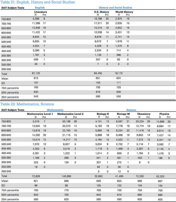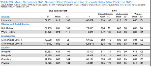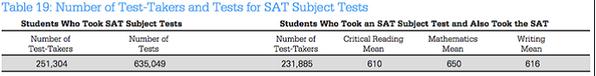 報(bào)告中,關(guān)于SATⅡ?qū)ξ覀冎袊?guó)考生有啟發(fā)的數(shù)據(jù)集中在表格中。